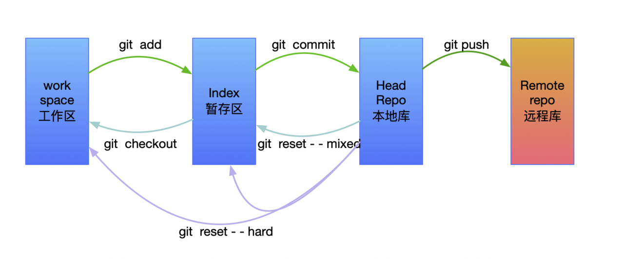 git add命令执行了,git commit命令也通过了,这时你发现有错误代码提交上来了,这时,你可以这样操作git reset –hard HEAH^,这条命令会覆盖workspace、index、head,也就是用远程库覆盖本地所有区的代码
