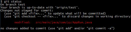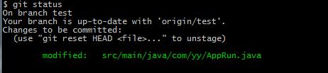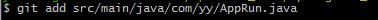 这时,我们执行:git add src/main/java/com/yy/AppRun.java,git add操作之后,新增的代码就添加到了index区,变化的文件由add前的红色变成了add后的绿色