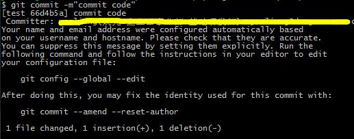 add成功后,要将新代码提交到head区,为此执行命令: git commit -m”commit code”,新代码此时已在提交完成