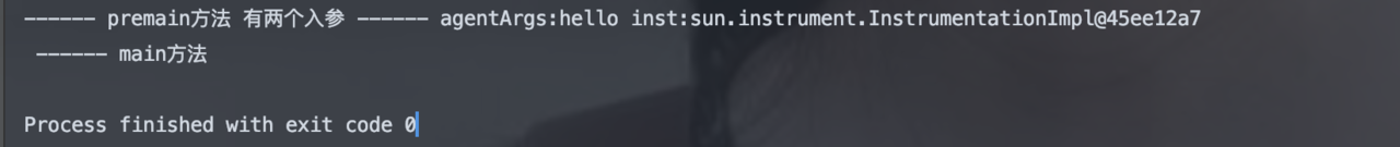 ------ premain方法 有两个入参 ------ agentArgs:hello world inst:sun.instrument.InstrumentationImpl@a09ee92
