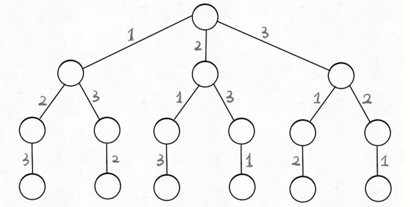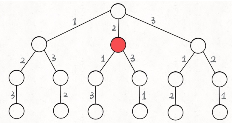 你选择就在做决策,可以选择 1 那条树枝,也可以选择3那条树枝。为啥只能在1 和 3 之中选择呢?因为 2 这个树枝在你身后,这个选择你之前做过了,而全排列是不允重复使用数字的。