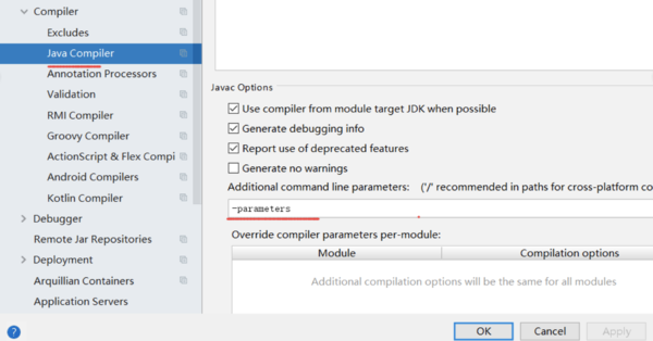 • 变量名称引用(需要jdk1.8支持) :通过方法中参数名称引用,需要jdk1.8支持,且在编译时必须加上 -parameters 编译命令