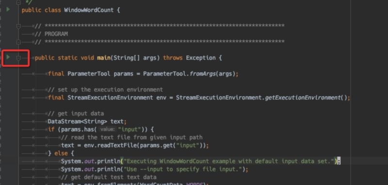 flink 代码编译完成后,直接选择一个 example 即可运行,如: org.apache.flink.streaming.examples.windowing.WindowWordCount.java