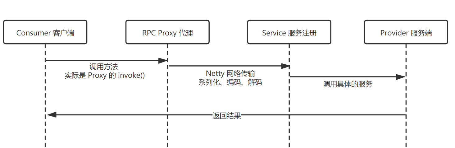 - ProviderHandler: 根据请求调用在 Provider 注册的具体服务,并将结果写入 ChannelHandlerContext 返回