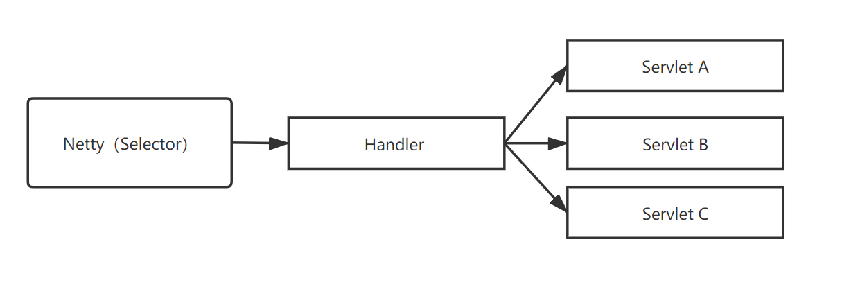 在前面提到到,Netty 会将事件(一个请求)派发给 Handler 进行处理,这里实现的 Handler 的目的是将请求根据 URI ,调用其对应的 Servlet 的方法。