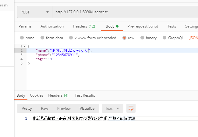 这样看起来就很清晰了。这里只是为了演示,没有做统一的返回结果封装,在实际开发中,通常会将返回的结果封装成json格式,不同的错误码对应不同的提示,方便前后端开发对接。这里就不再做进一步扩展。