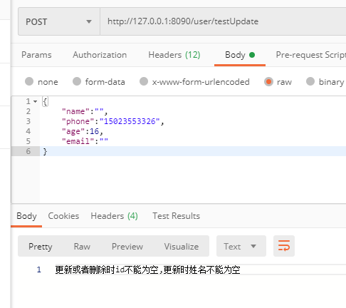 结果与预期完全符合。@Validated注解在分组校验时候,可以节省很多额外的开发,特别是当新增和更新时,一个需要传递主键一个不需要传递主键的情形,以前需要些一个AddRequest一个UpdateRequest,现在只有需要一个就够了。
