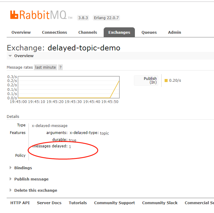 delayedSink.output().send(MessageBuilder.withPayload(context).setHeader("x-delay", 20000).build());