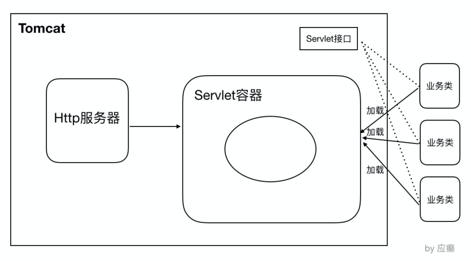 HTTP服务器接收到请求之后把请求交给Servlet容器来处理,Servlet容器通过Servlet接⼝调⽤业务类。