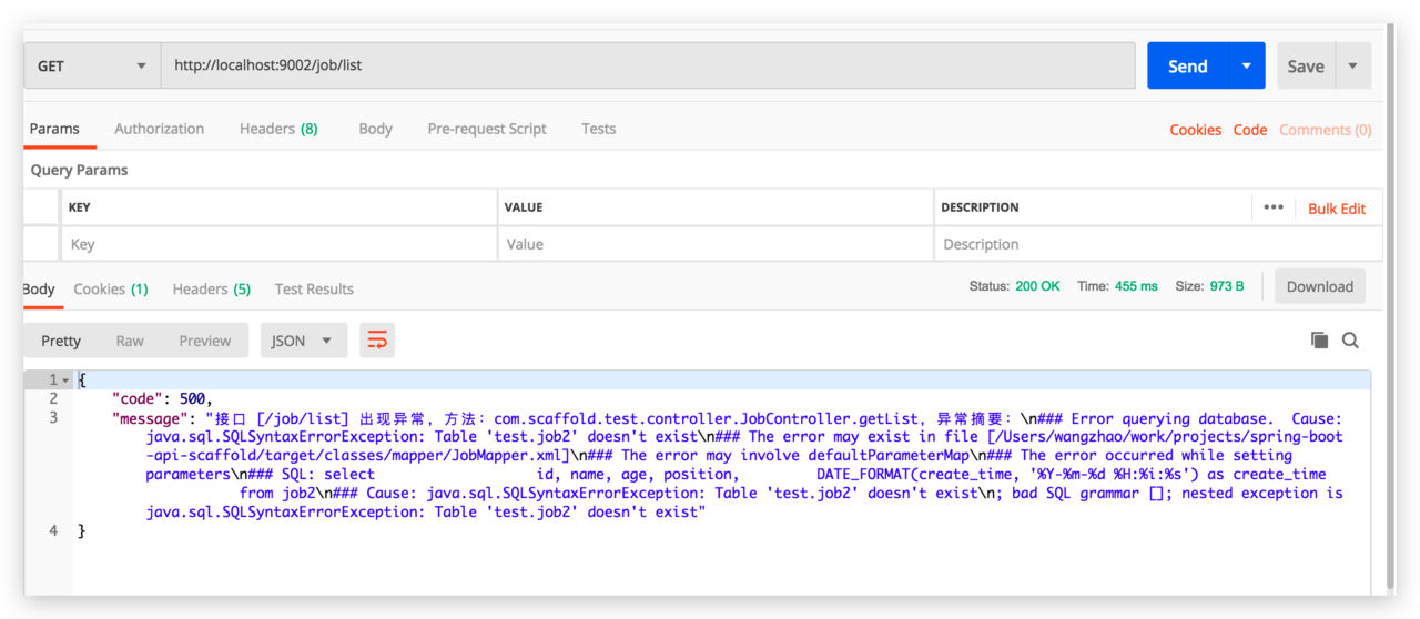 3、内部代码异常:比如 mysql 查询表名错误