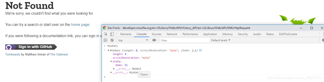 另外URL en-US/docs/Web/API/XMLHttpRequest(并非真实存在的URL), 在pushState完成之后,并不触发页面的重新加载或者检查当前URL的目录是否存在。