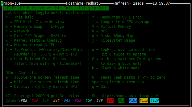 帮助命令为“H”,通过H命令可以了解到nmon的命令及作用