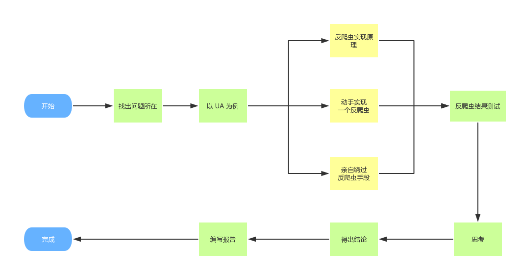 我也在尝试着,能够将这样的知识分享出来,让大家在闲暇之余能够通过这篇文章学习到反爬虫知识中比较简单的反爬虫原理和实现方法,再熟悉他的绕过操作。比如 User-Agent 反爬手段,了解它的原理并且亲手实现反爬虫,再亲手绕过它。或许通过这个小小的案例,就可以打开你思维的大门、撬开你思路的下水道。
