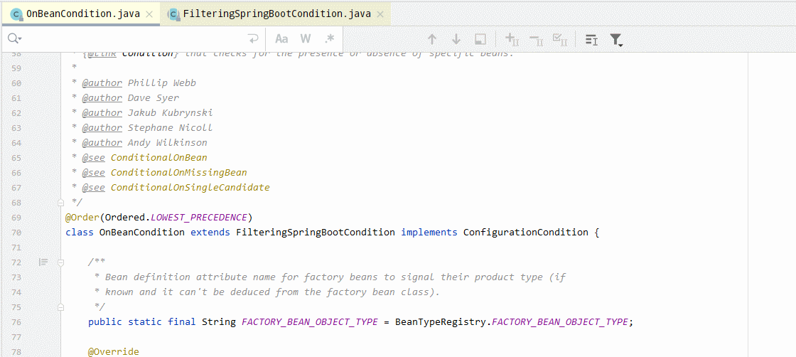 具体逻辑,就不在这里赘述了,如果想查阅,可以查看org.springframework.boot.autoconfigure.condition.OnClassCondition这个类,它是@ConditionalOnClass的逻辑处理类。