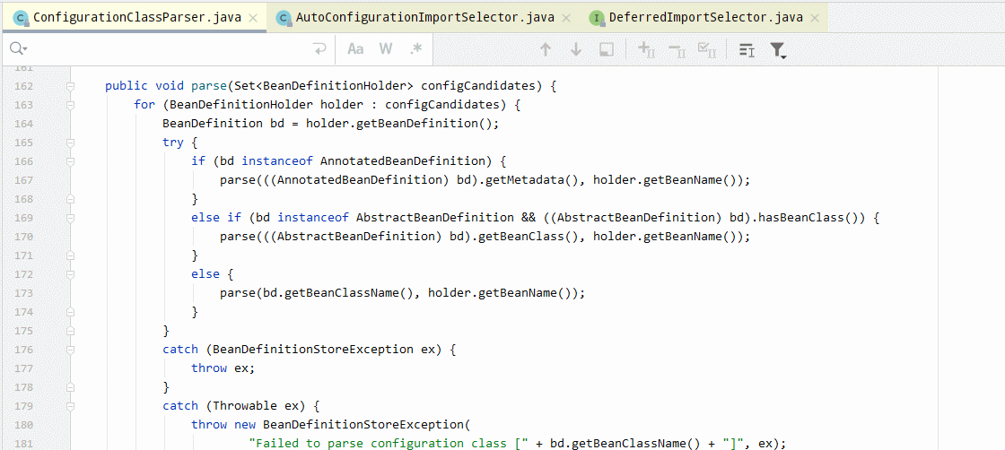 在其中this.deferredImportSelectorHandler.handle(..)j将DeferredImportSelector放入队列,延后处理。