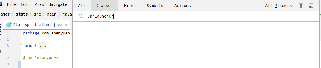 进入IDEA,Ctrl+N查找JarLauncher,竟然找不到!!
