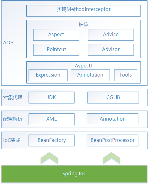 - 抽象层,包括了Spring对AOP概念的封装和抽象,重点理解一下Advisor,这是Spring独有的概念;