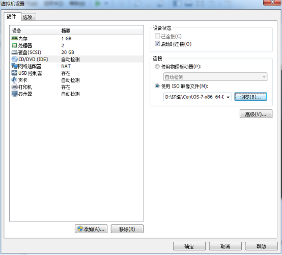 1、 单击【CD/DVD(IDE)】,右侧选择“使用ISO映像文件”,选择操作系统的镜像文件ISO,并【确定】
