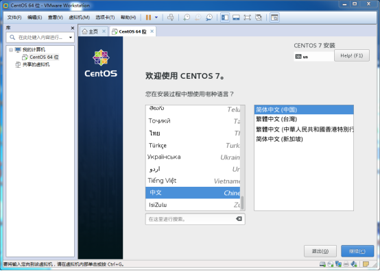 1、 选择“中文”-“简体中文”,并点击【继续】