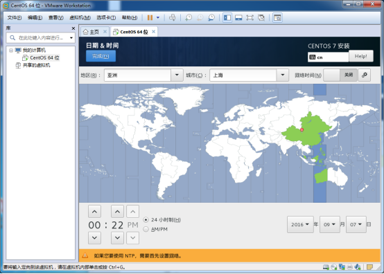 1、 设置安装信息,单击“本地化”-“日期和时间”,设置时间信息,并点击【完成】