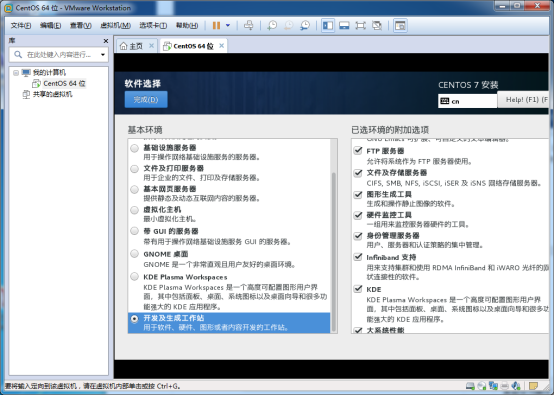1、 单击“软件”-“软件选择”,服务器选择“最小安装”没有图形化桌面,可根据实际需要或喜好选择,在此我选择“开发及生成工作站”,并点击【完成】