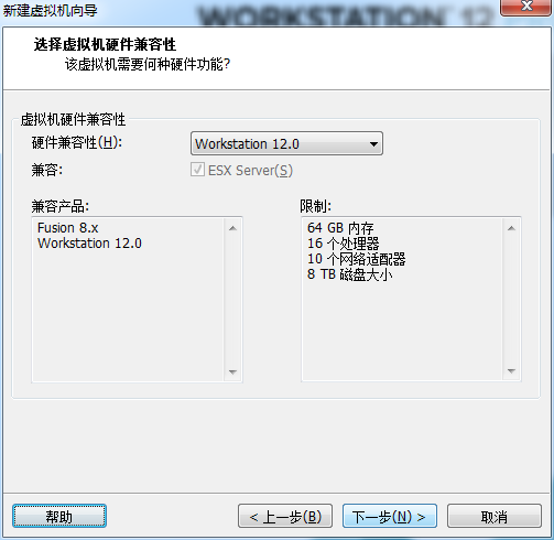 1、 选择虚拟机硬件兼容性,并点击【下一步】