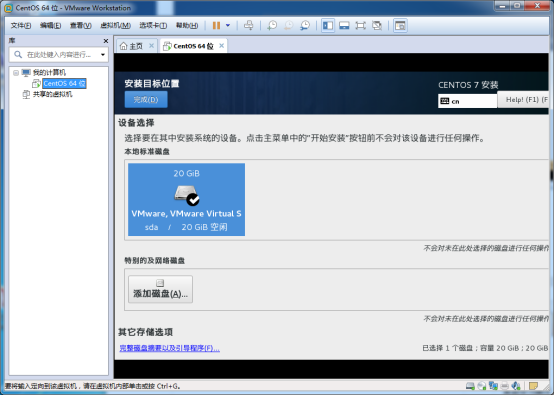 1、 单击“系统”-“安装位置”,选择“本地标准磁盘”,根据实际情况添加磁盘,并点击【完成】