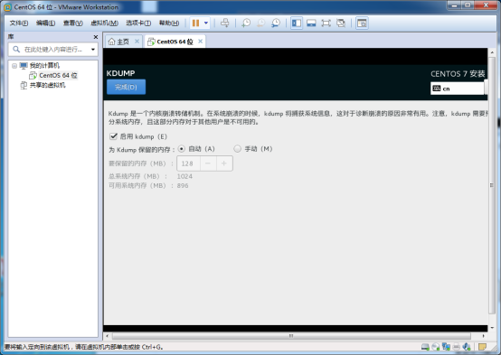 1、 单击“系统”-“KDUMP”,选择“启用kdump”和设置内存,并单击【完成】