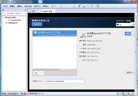 1、 单击“系统”-“网络和主机名”,选择【开启】和设置主机名,并点击【完成】
