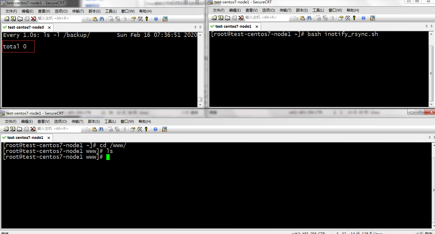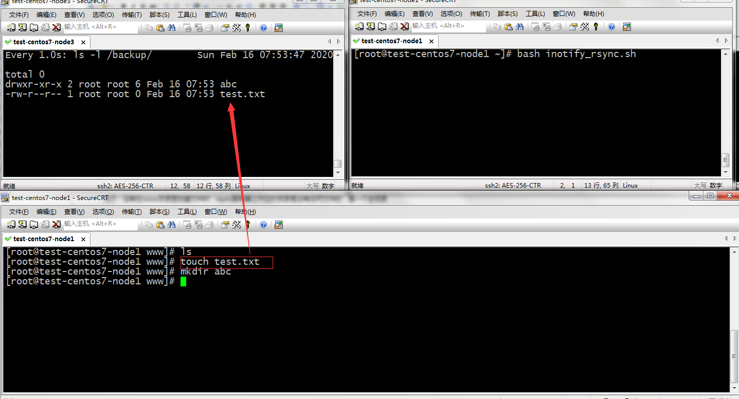 8)运行脚本,然后在/www目录下新建文件,看看能不能及时同步到rsync服务器上去
