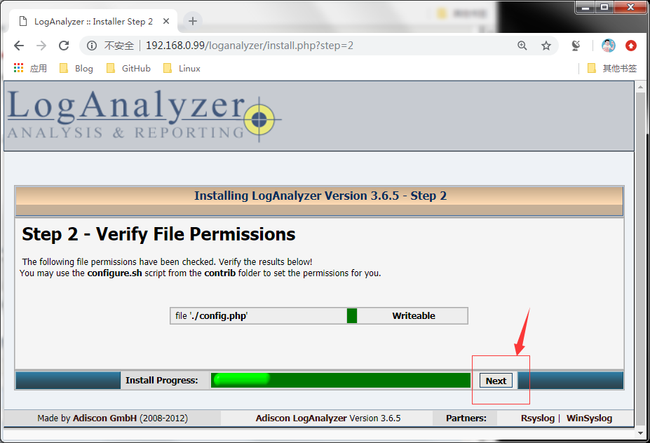 [root@test loganalyzer]#chmod 666 config.php