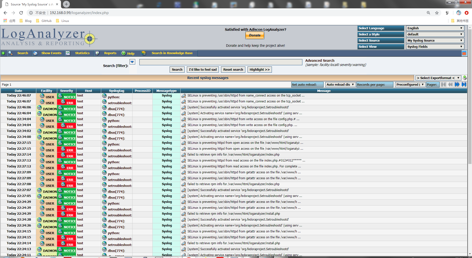 七、通过loganalyzer展示数据库中的日志