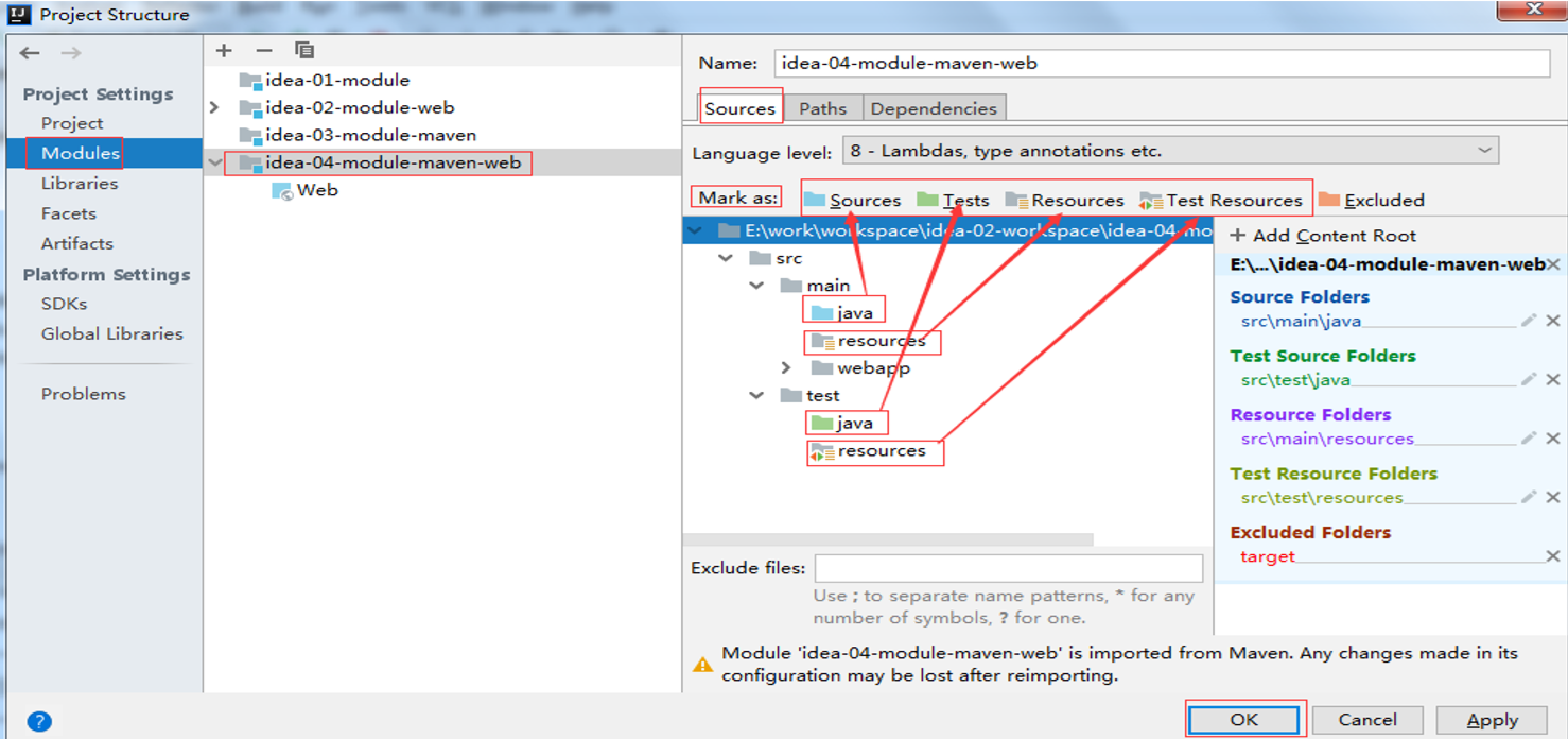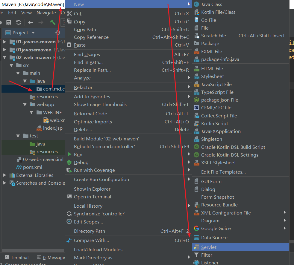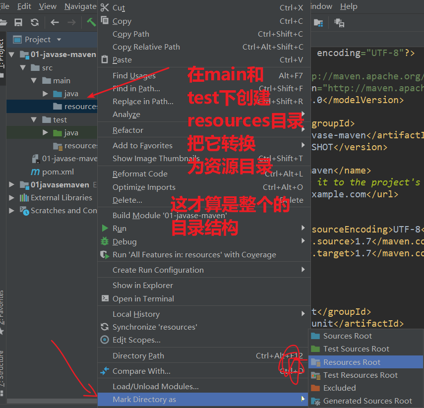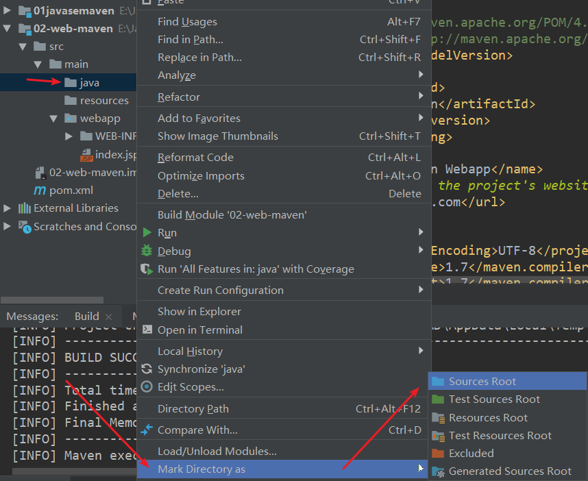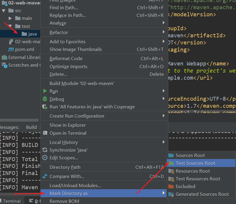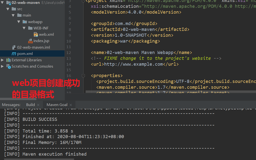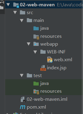 显然,按照 maven archetype 原型创建的 maven web 工程缺少 maven 项目的完整结构:src-main-java / resources,src-test-java/resources,所以需要我们手动添加文件目录