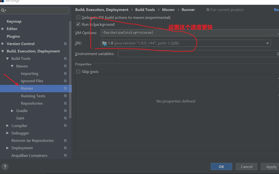 还可以继续设置,maven项目创建时,会联网下载模版文件,比较大, 使用-DarchetypeCatalog=internal,不用下载, 创建maven项目速度快