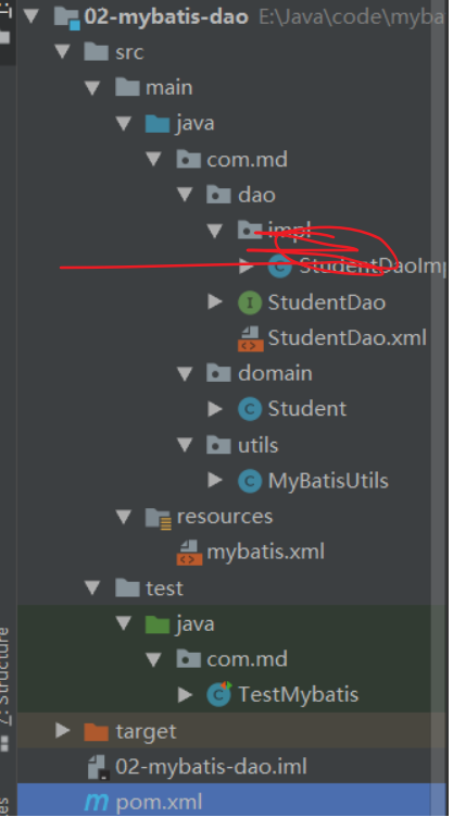 1、 dao对象,类型是StudentDao,而这个接口的全限定名称是:com.md.dao.StudentDao正好和类型是StudentDao.xml中的namespace是一样的