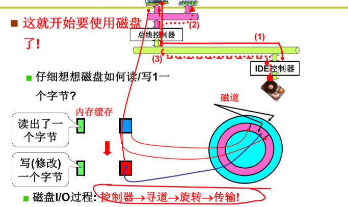 总的来说:移动磁头,移动到对应的磁道上,然后转动磁道,移动到对应的扇区上,一边旋转一边进行磁生电,电生磁,和内存缓冲区进行数据的交互读和写