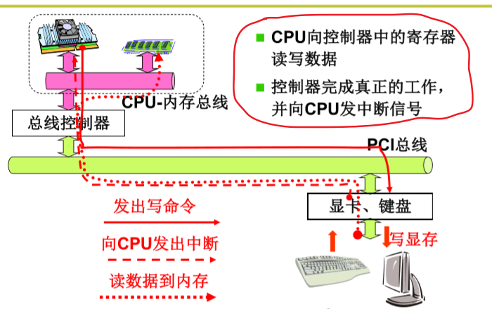中断处理:当CPU(中央处理器)执行一条现行指令的时候,如果外设向CPU发出中断请求,那么CPU在满足响应的情况下,将发出中断响应信号,与此同时关闭中断,表示CPU不在受理另外一个设备的中断。这时,CPU将寻找中断请求源是哪一个设备,并保存CPU自己的程序计数器(PC)的内容。然后,他将转移到处理该中断源的中断服务程序。CPU在保存现场信息,设备服务(如交换数据)以后,将恢复现场信息。在这些动作完成以后,开放中断,并返回到原来被中断的主程序的下一条指令。