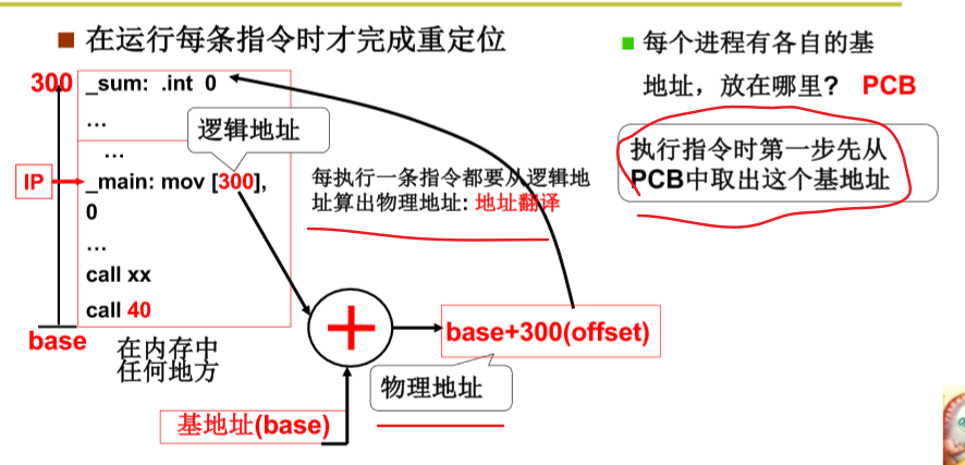 把程序放到找到的空闲内存中,每次执行都有进行地址翻译