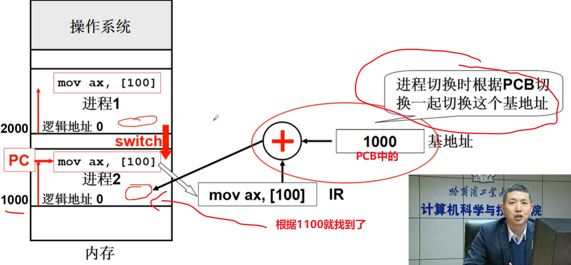 首先在内存中找一段空闲的内存,然后把这段空闲内存的地址找到例如起始地址1000,然后把这个1000赋给PCB,因为创建了进程自然就有了PCB,这个起始地址就作为基地址,然后PC置好初始地址开始执行。