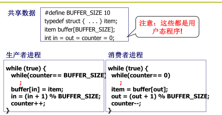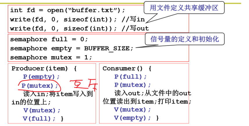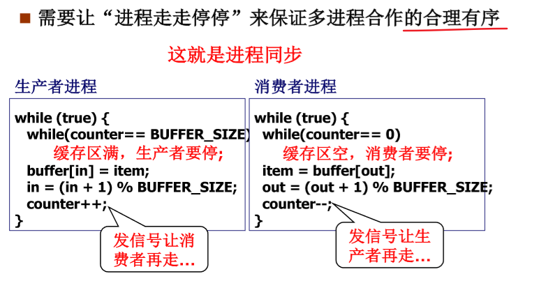 3、 当缓存区满,生产者必须等待消费者(调度/同步约束)