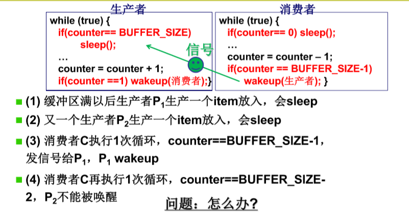 问题的关键在于消费者仅仅是在缓冲区满的时候知道有生产者在等待