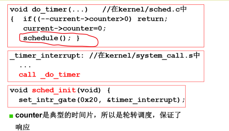 这是在时钟中断,每次时钟中断都让counter=0,然后就开始切换