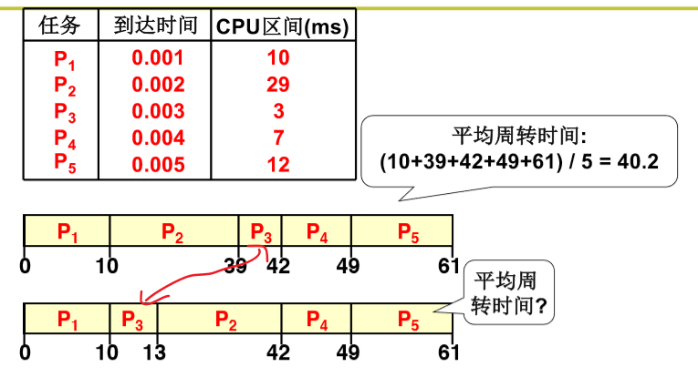1. 第一种:SJF(短作业优先),周转时间就上来了