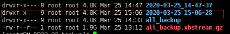 此时,备份的结果放在/app/backup目录下,由于没指定no-timestamp参数,备份的结果存在在已三期时间命名的目录下: