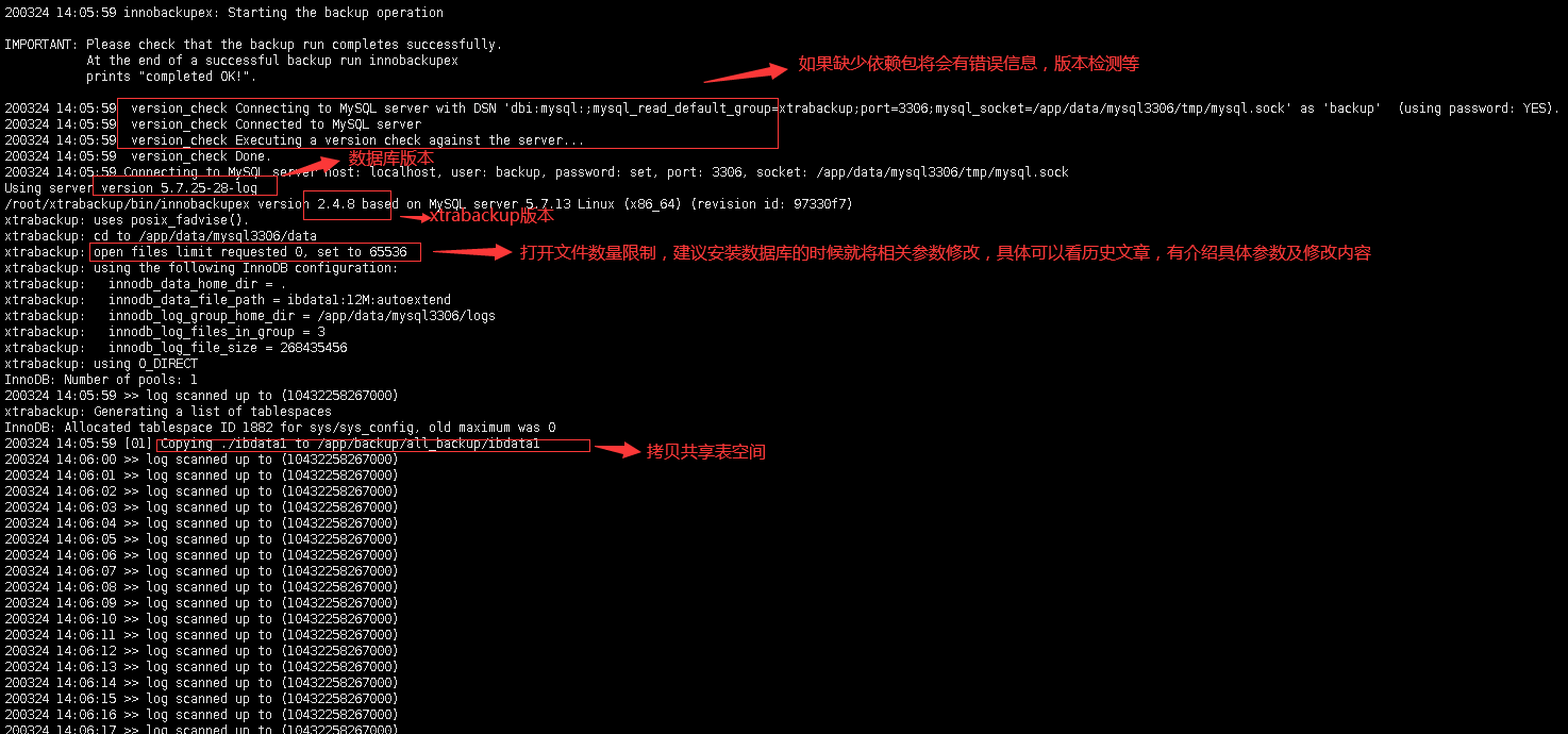基于xtrabackup2.4版本备份MySQL5.7数据库的主要方法及过程常用情况均已演示,结尾处再总结一下xtrabackup的主要优点: