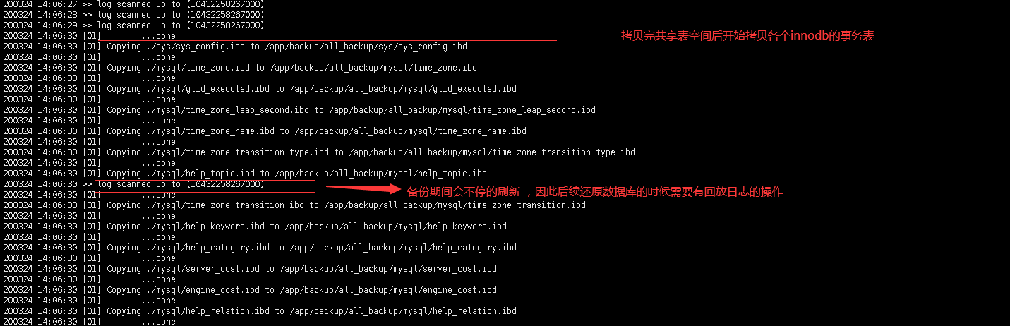 备份后的文件不能直接用作恢复,还需要先使用apply-log 做前滚和回滚
