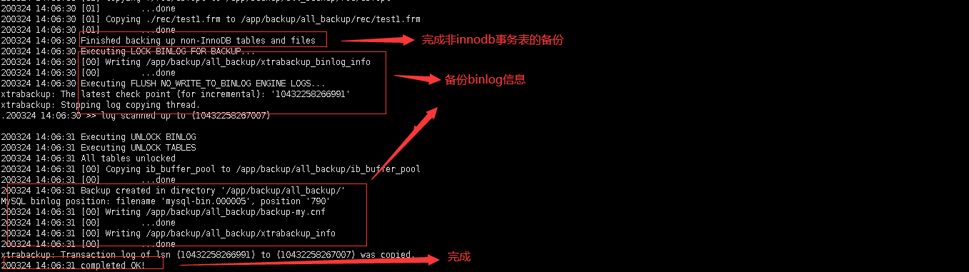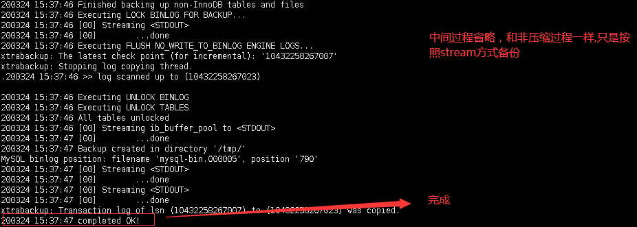 xbstream压缩备份的过程和tar一致,就不再解释了。
