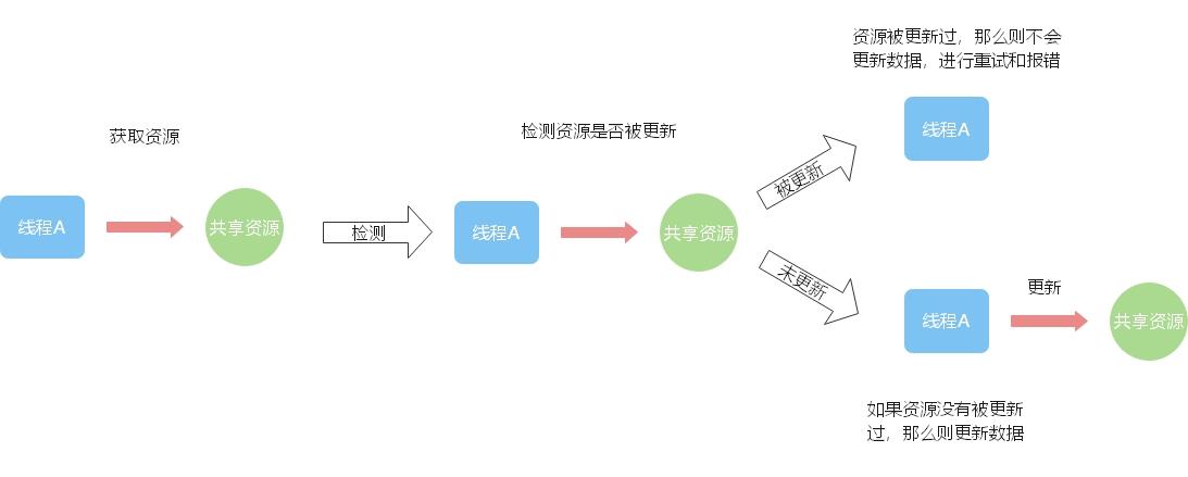 乐观锁是在操作共享资源时,总是认为会成功。所以在操作共享资源时不需要加锁,只有在更新资源的时候会去确认资源在之前是否已经被其他线程更新过,如果被更新过,那么就会重试或者报错,否则就将自己的数据写入。