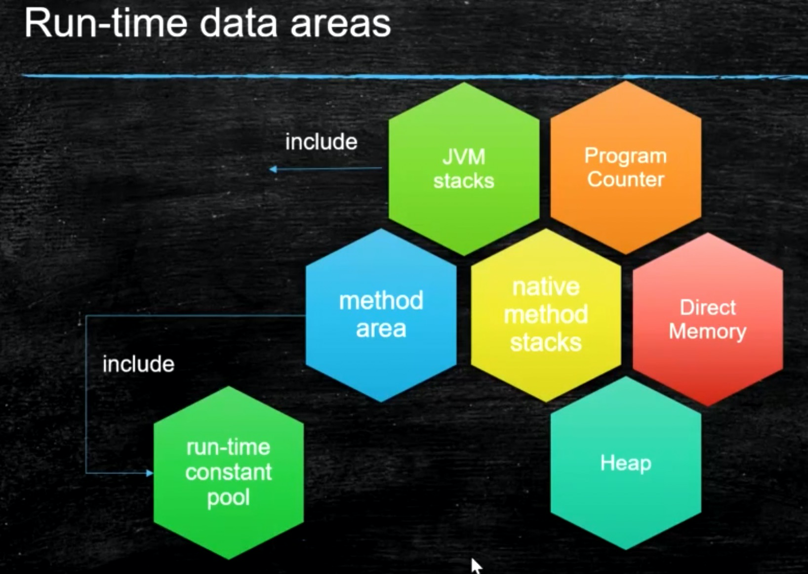 方法区(Method Area):是一种逻辑划分。与Java堆一样,是各个线程共享的内存区域,它用于存储已被虚拟机加载的类型信息(类名、访问修饰符、字段描述、方法描述等)、常量池(静态常量在编译器存入class文件常量池)、静态变量、即时编译器编译后的代码缓存等数据。