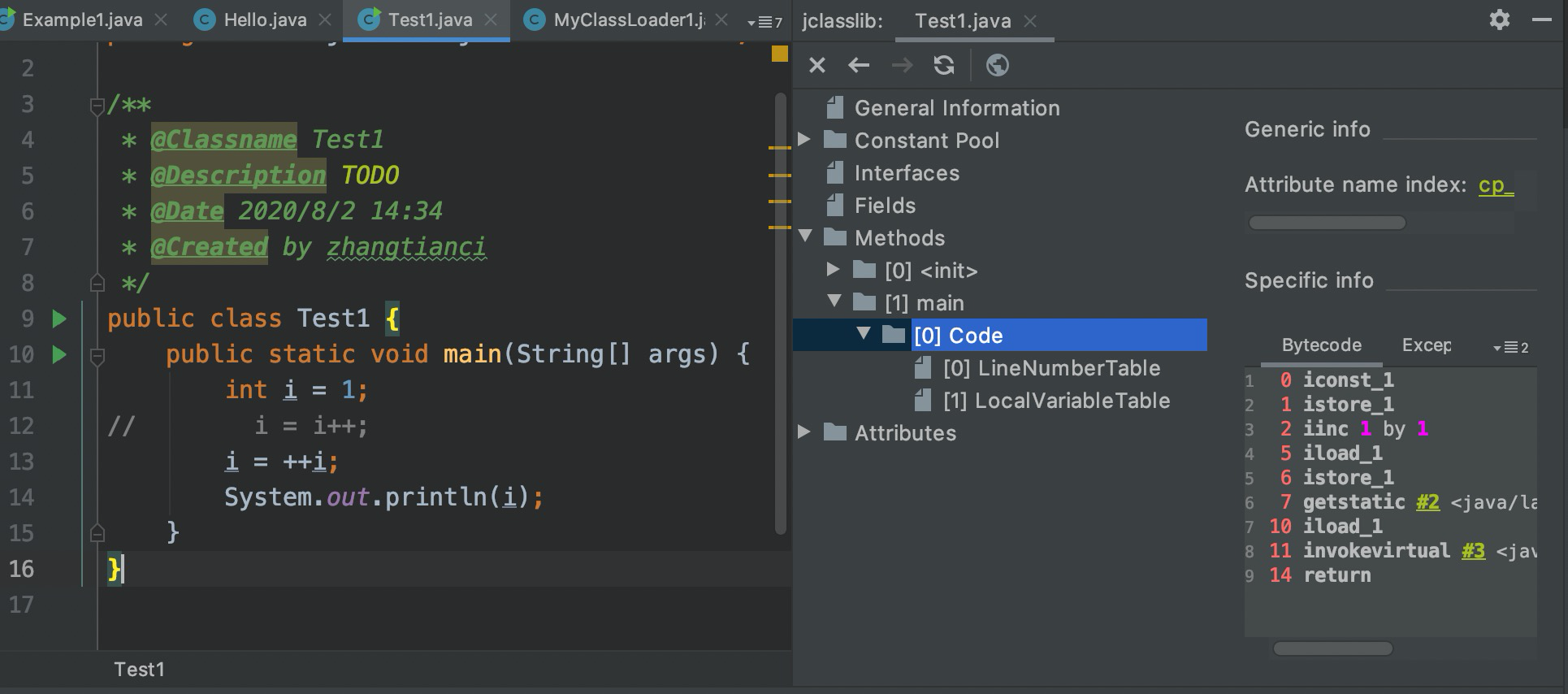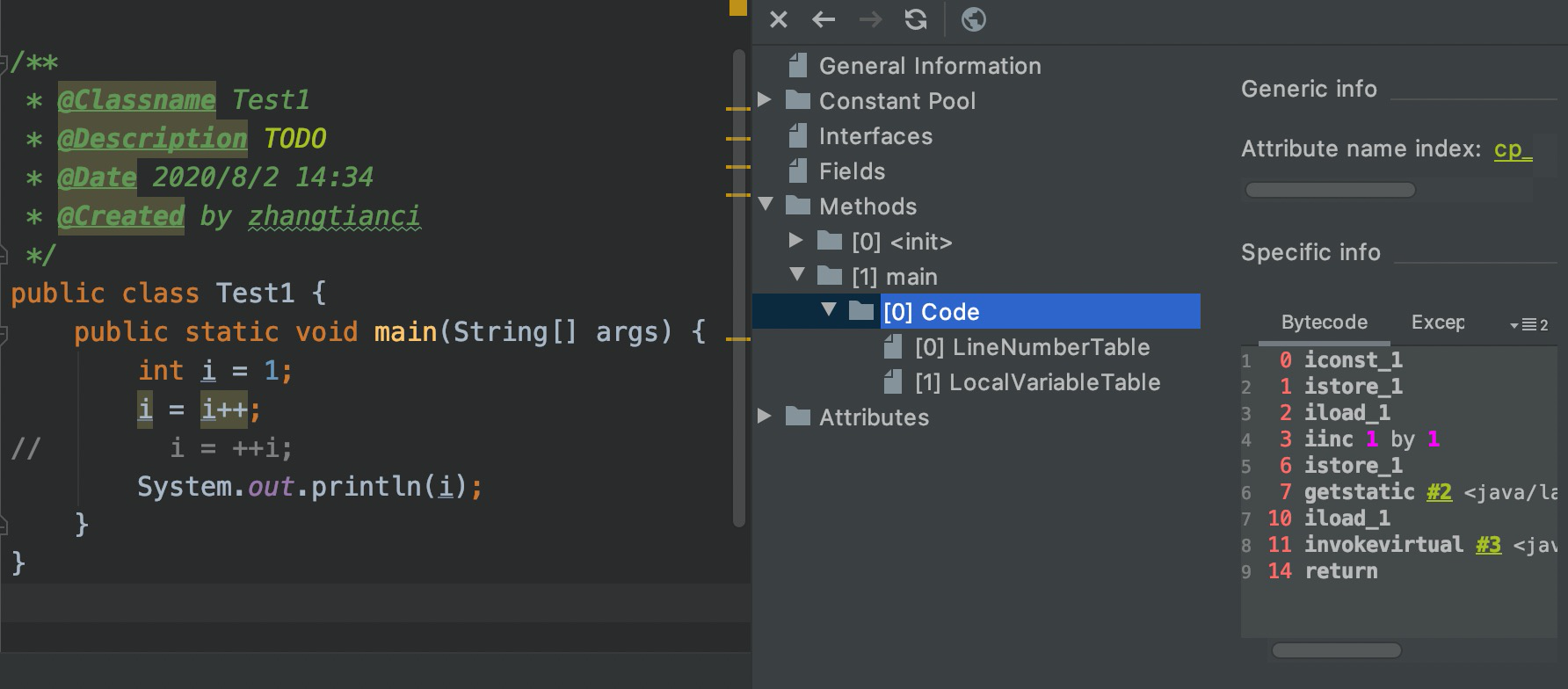 所以最终局部变量表索引为1位置(即i)的值为1。